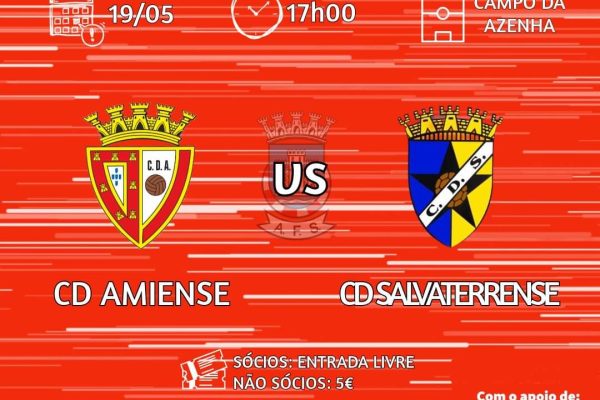 30.ª Jornada do Campeonato Distrital da 1.ª Divisão de Seniores 𝘾𝘿 𝘼𝙈𝙄𝙀𝙉𝙎𝙀 vs. CD Salvaterrense ⚽️ ANTEVISÃO 𝘾𝘿 𝘼𝙈𝙄𝙀𝙉𝙎𝙀 (Forma recente – D V E D V) – 12.º lugar, 29 pontosCD SALVATERRENSE (Forma recente – D D D V D) – 11.º lugar, 31 pontos 𝗖𝗢𝗡𝗙𝗥𝗢𝗡𝗧𝗢 𝗗𝗜𝗥𝗘𝗧𝗢 (últimos 5 jogos) 𝘾𝘿 𝘼𝙈𝙄𝙀𝙉𝙎𝙀 1-3 CD…
